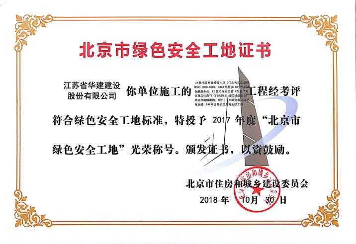 北京公司兩項工程獲北京市綠色安全工地 時間:2018-11-11 3615 近日,從北京市住房和城鄉建設委員會傳來喜訊,由北京公司總包承建的1#住宅及商業樓等4項(1#住宅及商業樓、2#住宅及商業樓)和1#住宅及商業樓等4項(3#限價商品房及商業樓、8#限價商品房及商業樓)兩個標段項目榮獲 “北京市綠色安全工地”光榮稱號,并獲頒證書。