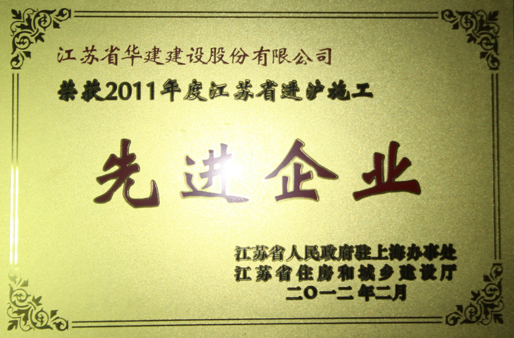公司九獲“江蘇省進滬施工先進企業”稱號 時間:2012-03-20 5355 3月5日,在江蘇省政府駐滬辦、江蘇省住房和城鄉建設廳召開的2011年度江蘇進滬施工總結表彰大會上,江蘇華建被表彰為“江蘇省進滬施工先進企業”,這已是第九次獲次殊榮;表彰會上,上海洛克外灘源項目部被評為優秀項目部,另有5人被評為優秀建造師,各有1人被評為安全管理先進個人、質量管理先進個人、經營管理先進個人、財務管理先進個人。