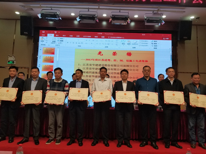 惠州公司獲評“2017年度江蘇出省施工先進集體” 時間:2018-03-26 3286 3月24日,2018年度江蘇建筑業南方區工作會議在深圳召開,會議表彰了一批江蘇出省施工先進集體及先進個人。惠州公司被江蘇省住房和城鄉建設廳評為“2017年度江蘇出省施工先進集體”,總經理周群利、技術處主任陳申高被江蘇省住房和城鄉建設廳評為“2017年度江蘇出省施工先進個人”;史泰龍、孔祥明、王興東分別被江蘇省人民政府駐深圳(廣州)辦事處表彰為2017年度江蘇進粵、桂、閩、瓊施工質量安全、經營財務和新聞報道先進個人。