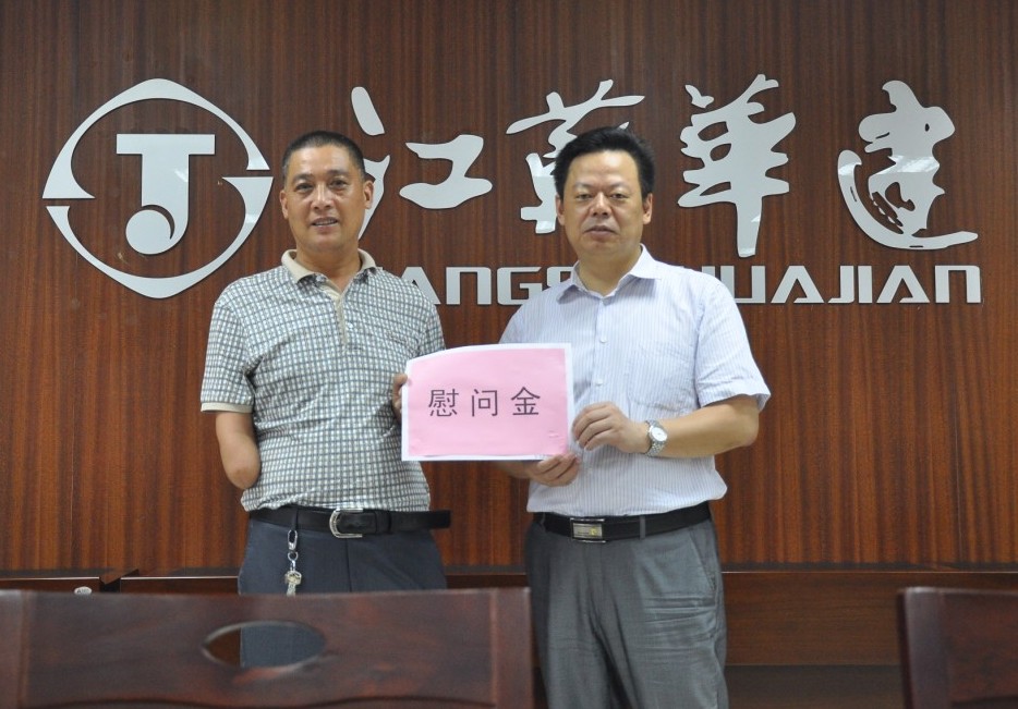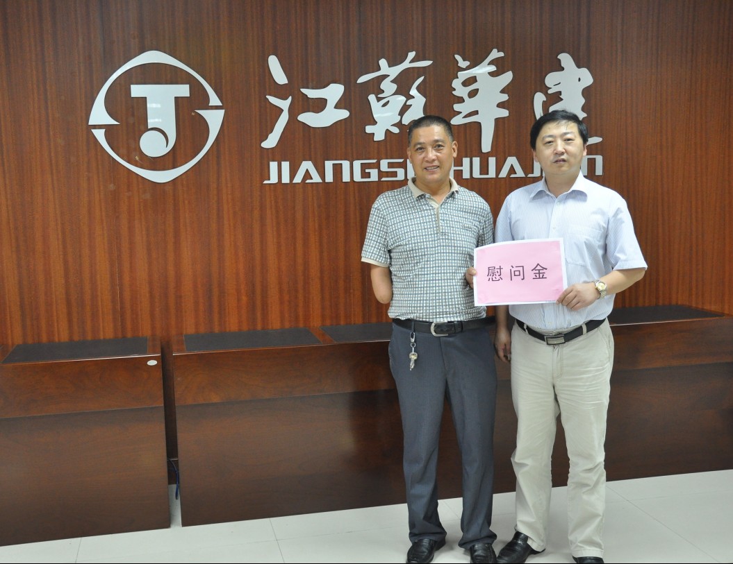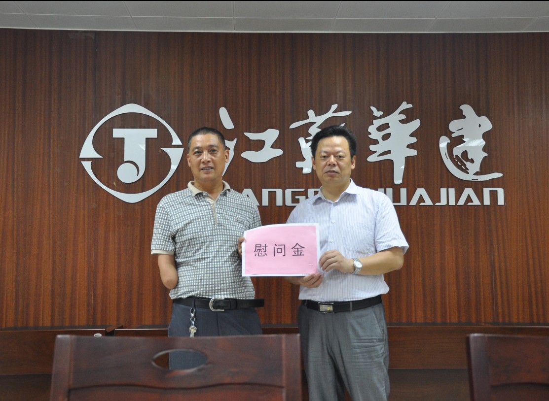 惠州區域公司慰問傷殘員工 時間:2013-08-06 3770 夏日炎炎,酷暑難耐。江蘇華建副總經理、惠州分公司總經理華恒榮率分公司工會親切慰問了在惠州分公司第九工程處工作的傷殘員工居家應(居家應90年代在寶應工作期間,不慎失去了右膀,被定為三級傷殘)。慰問中,華總詳細了解他的生活、工作情況,并向他發放慰問金,同時要求九處在工作、生活上給予一定的關心。居家應感謝組織對他的關心,表示身殘志不殘,更加積極努力的工作,不辜負組織的期望。惠州分公司總會計師高正金,分公司工會主席王健陪同慰問。