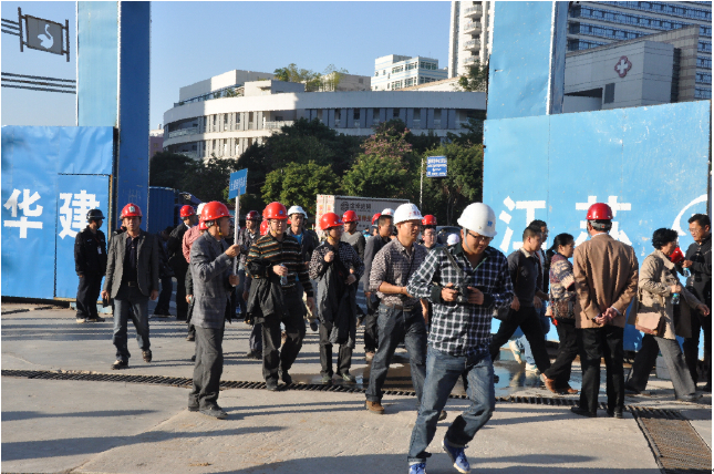 2013年11月27日上午,“廣東省房屋市政工程安全生產(chǎn)文明施工示范工地”示評(píng)會(huì)在惠州公司大隆·財(cái)富廣場(chǎng)項(xiàng)目工地現(xiàn)場(chǎng)召開。廣東省住房和城鄉(xiāng)建設(shè)廳質(zhì)量安全監(jiān)管處調(diào)研員彭雞寶、廣東省建筑安全協(xié)會(huì)會(huì)長(zhǎng)鐘偉文、惠州市住房和城鄉(xiāng)規(guī)劃建設(shè)局副局長(zhǎng)陳訓(xùn)政、惠城區(qū)城鄉(xiāng)規(guī)劃建設(shè)局副局長(zhǎng)月明應(yīng)邀出席了本次會(huì)議,一同參加會(huì)議的還有擔(dān)任本次評(píng)審工作的30位評(píng)審專家。會(huì)議由廣東省建筑安全協(xié)會(huì)副秘書長(zhǎng)王啟主持。