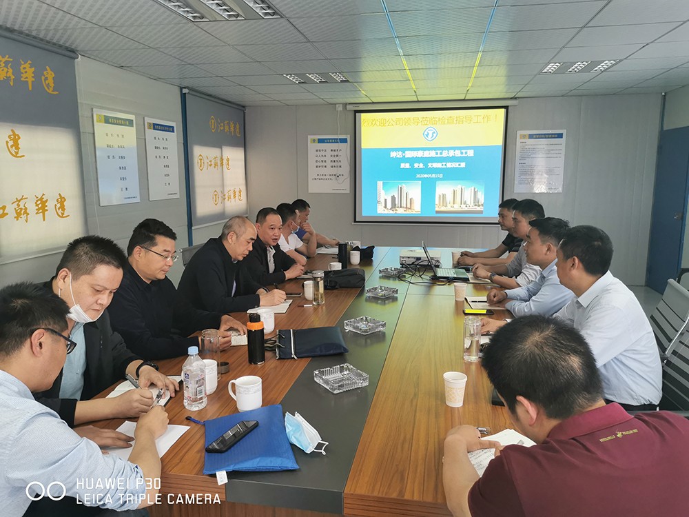 檢查組一行深入項目施工現場,認真查看項目質量安全標準化推廣、大型機械設備、現場觀感、實測實量和質量安全資料管理等方面情況,充分肯定項目在施工過程中好的經驗和做法,同時對檢查中發現的不足進行逐條點評,并提出整改意見,為海南區域公司進一步提升質量安全管理水平提出了建議和要求。檢查過程中,盧總特別對持續做好疫情防控、安全有序復工復產、落實領導帶班制度等方面工作進行了指導和強調。