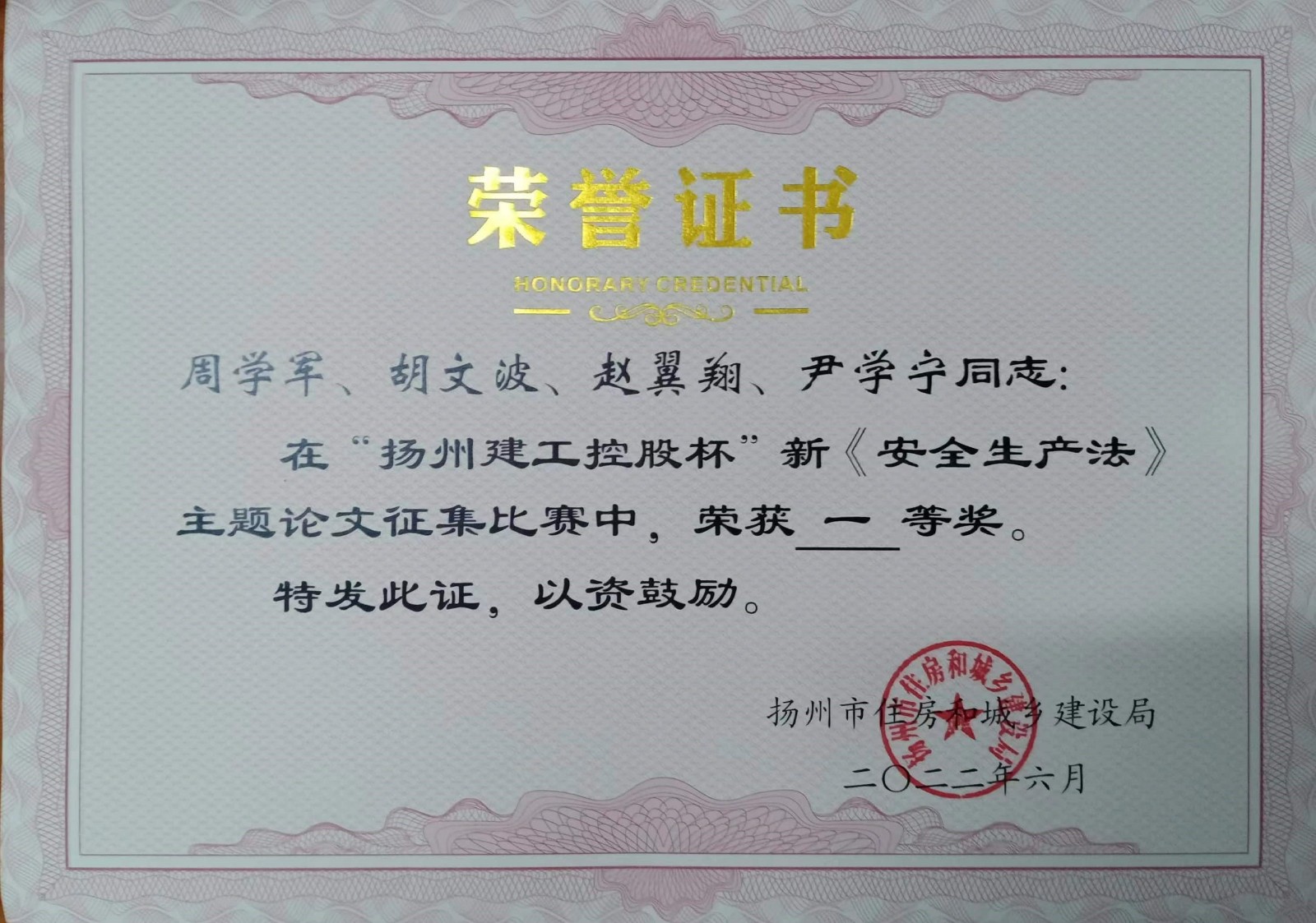 近日,從揚(yáng)州市住房和城鄉(xiāng)建設(shè)局傳來(lái)喜訊,由北京公司投稿的4篇論文榮獲“揚(yáng)州建工控股杯”新《安全生產(chǎn)法》主題論文征文比賽獎(jiǎng)項(xiàng),并獲頒證書(shū),其中一等獎(jiǎng)一項(xiàng),三等獎(jiǎng)一項(xiàng),優(yōu)秀論文獎(jiǎng)兩項(xiàng)。