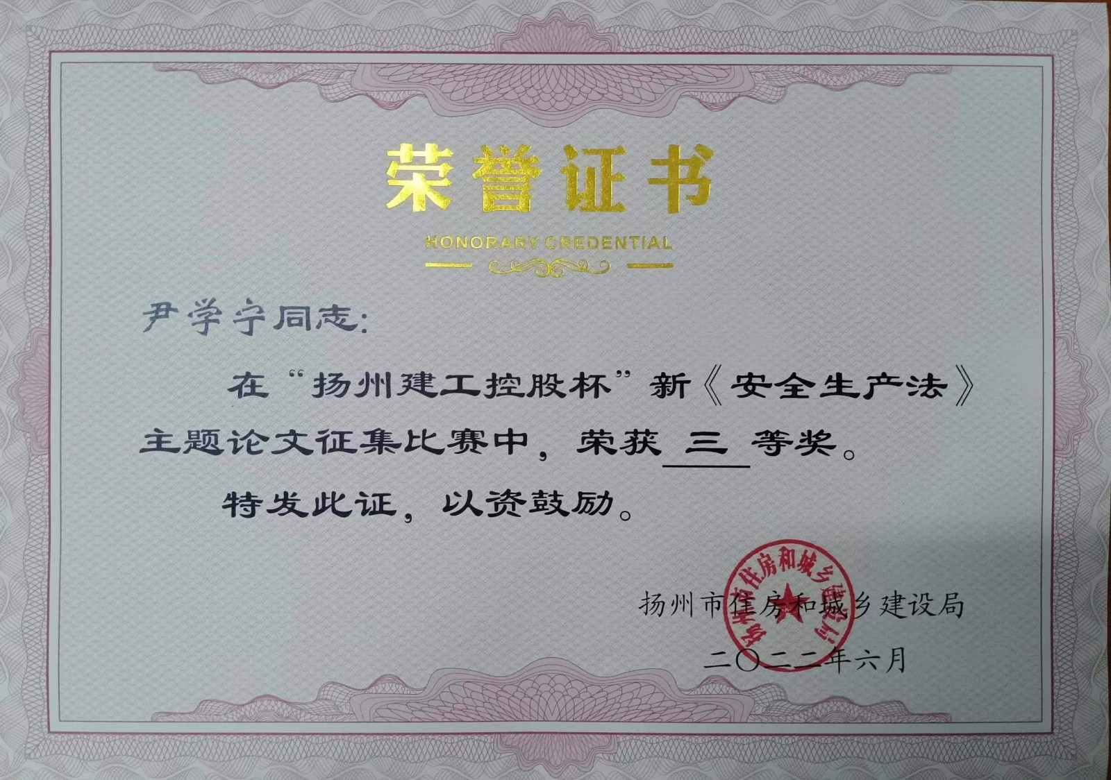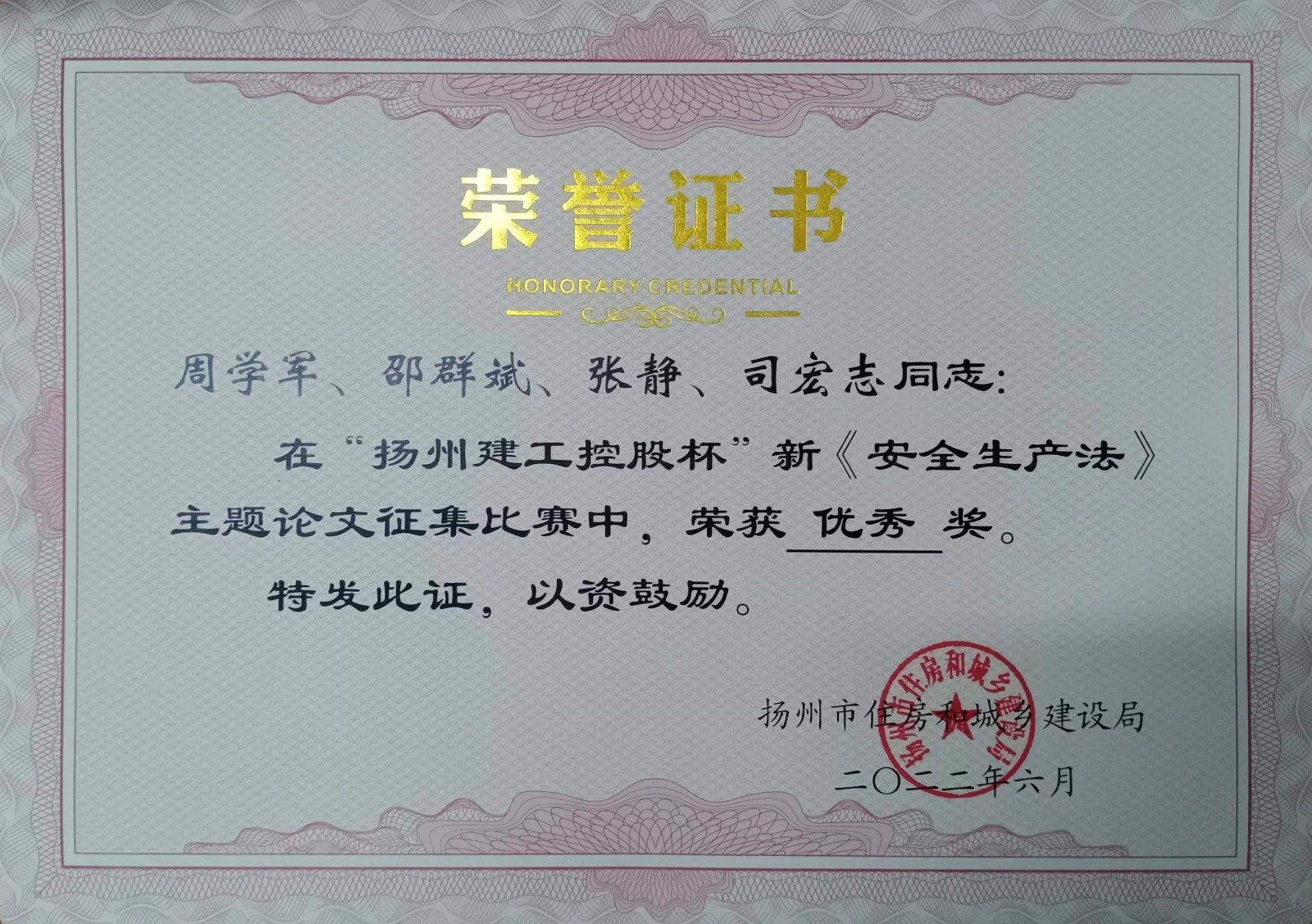 北京分公司4篇論文獲揚(yáng)州市新《安全生產(chǎn)法》主題論文征文比賽獎(jiǎng)項(xiàng)