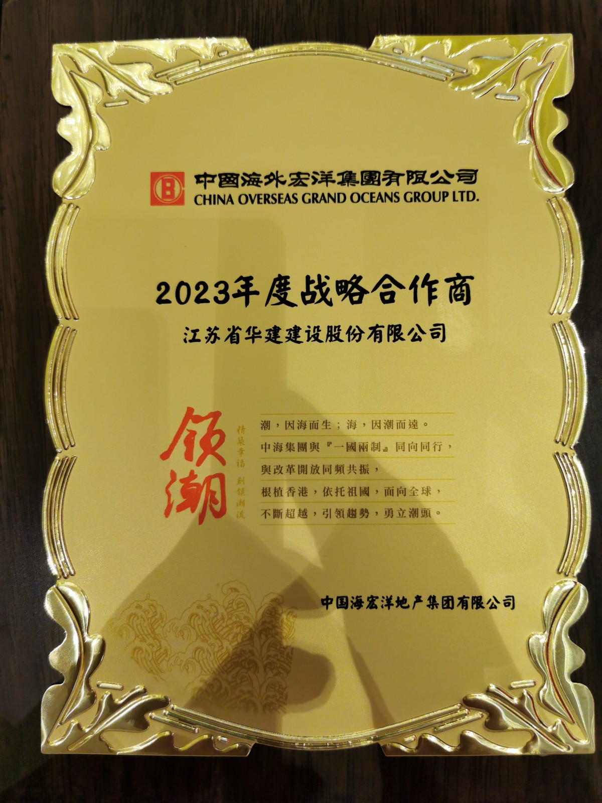 2023年5月12日,中海宏洋集團在深圳中信城市廣場舉行2023年度戰(zhàn)略單位簽約儀式,江蘇華建作為唯一新增總包單位入選戰(zhàn)略合作商名單。江蘇華建總經理吳碧橋、中海宏洋副總經理張海軍代表雙方簽約。