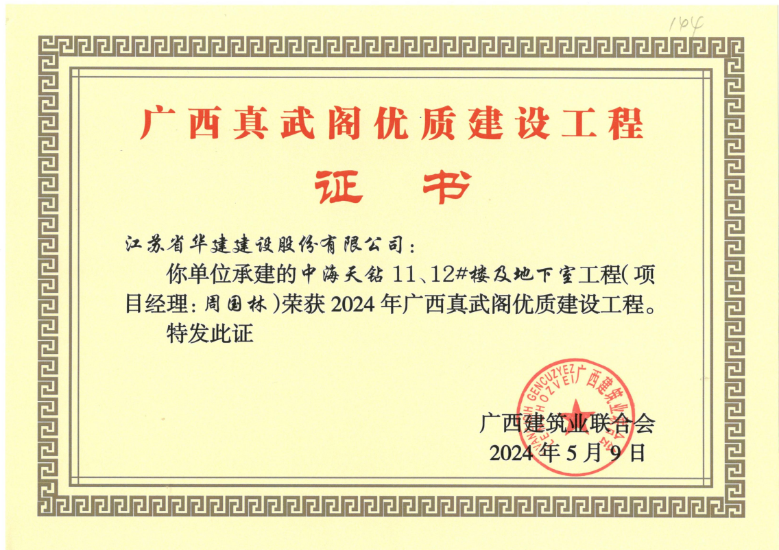近日傳來喜訊,江蘇華建北京分公司三項(xiàng)工程榮獲質(zhì)量獎(jiǎng)。中海天鉆13、14#樓及地下室、北側(cè)入口、圍墻工程和中海天鉆11、12#樓及地下室分別獲2024年廣西建設(shè)工程“真武閣杯”獎(jiǎng);中海望京府1#樓工程獲包頭市“金鹿杯”獎(jiǎng)。