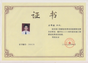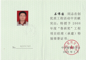 該同志先后擔(dān)任過多項(xiàng)工程的項(xiàng)目經(jīng)理,施工中所體現(xiàn)出的管理水平、協(xié)調(diào)能力、進(jìn)度控制贏得了主管部門和甲方的高度評(píng)價(jià)。尤其值得一提的是,石偉國(guó)擔(dān)任深圳市最大商住樓工程——深圳紅樹西岸(建筑面積35萬平方米)項(xiàng)目經(jīng)理期間,精心組織,精心施工,精心管理,創(chuàng)出優(yōu)良的工程質(zhì)量,工地成為業(yè)內(nèi)外進(jìn)行觀摩學(xué)習(xí)的重要基地,前來參觀者絡(luò)繹不絕,人數(shù)逾3000人次,都深深嘆服于有口皆碑的工程質(zhì)量。該工程在2004年度深圳市上半年度工程質(zhì)量、安全生產(chǎn)文明施工檢查中獲第一名,被評(píng)為廣東省、深圳市“雙優(yōu)”、深圳市金牛獎(jiǎng)、江蘇省“揚(yáng)子杯”、廣東省“金匠獎(jiǎng)”,2008年度問鼎全國(guó)建設(shè)工程最高質(zhì)量榮譽(yù)魯班獎(jiǎng)。