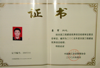 他本人因成績突出,工作勤勉,先后獲得“揚(yáng)州市青年突擊手”、全國工程建設(shè)優(yōu)秀項(xiàng)目經(jīng)理等榮譽(yù)稱號。