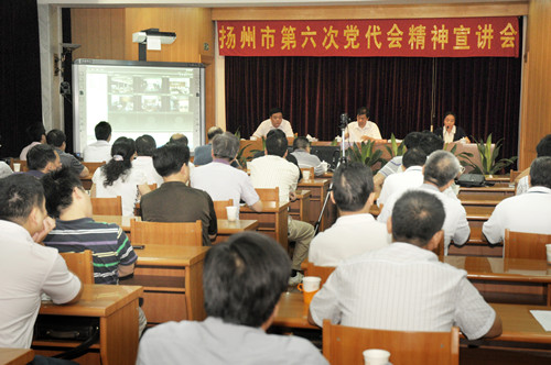8月29日下午,建工控股系統的2名市第六次黨代會代表陸金龍和陳梅梅,向系統內華建、揚建、揚安、華宏、二建、揚子、建校等單位的100多名企業骨干,并通過遠程視頻通訊系統向華建駐外各分公司的數百名管理技術人員傳達了揚州市第六次黨代會精神。
