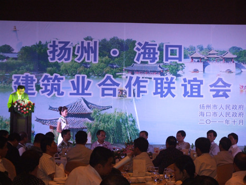 10月20日,揚(yáng)州·海口建筑業(yè)合作聯(lián)誼會暨1-3季度揚(yáng)州建筑業(yè)形勢分析會議在海口市文華大酒店隆重召開,揚(yáng)州市委常委、副市長陳揚(yáng)、市人大副主任高瑞芹、市政協(xié)副主席朱正海等領(lǐng)導(dǎo)參加了會議。陳揚(yáng)副市長指出此次會議主要是認(rèn)真貫徹落實(shí)揚(yáng)州市第六次黨代會精神,回顧總結(jié)今年以來全市建筑業(yè)運(yùn)行發(fā)展情況,研究部署下一階段重點(diǎn)工作,特別是分析研判國務(wù)院加快建設(shè)海南國際旅游島的政策機(jī)遇,進(jìn)一步拓展深耕海南建筑市場,推動建筑業(yè)總量擴(kuò)大、績效提升,確保全面完成全年目標(biāo)任務(wù)。高瑞芹副主任宣讀了“關(guān)于表彰2010年度揚(yáng)州市建筑業(yè)綜合實(shí)力20強(qiáng)企業(yè)的決定”,江蘇省華建建設(shè)股份有限公司榮獲“房屋建筑類10強(qiáng)企業(yè)”,海口市建設(shè)局卓桂勇副局長介紹了海口市建筑市場情況,王宏副總經(jīng)理代表市建工控股公司、華建公司作了交流發(fā)言。