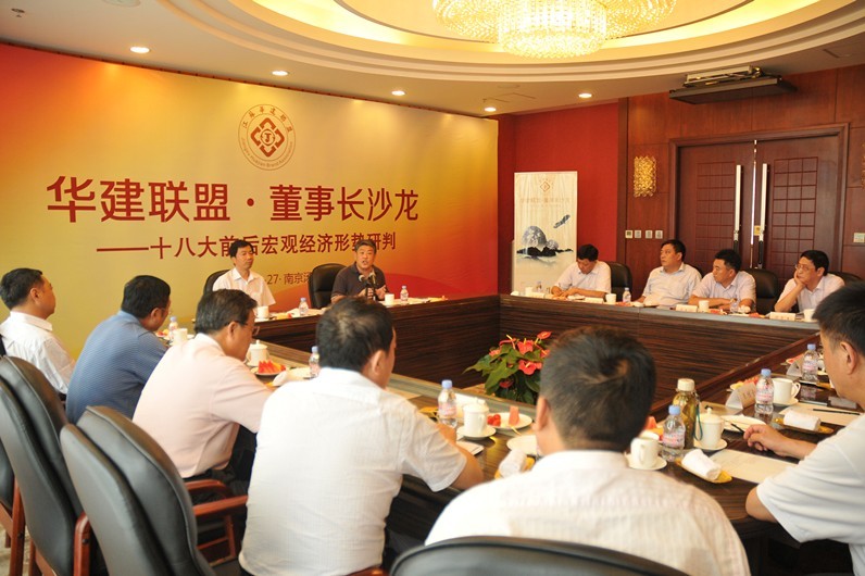 月26至27日,江蘇華建聯盟董事長沙龍在南京湯山舉行,13家聯盟成員單位的董事長參加了活動。26日下午,上海資深媒體人士、著名財經評論員李光一先生應邀為董事長沙龍作關于十八大前后宏觀經濟形勢和房地產市場走勢的專題輔導講座。李光一先生深入分析了當前國際國內宏觀經濟形勢,詳細解讀了近期部分經濟熱點話題,展望了房地產市場的發展趨勢,并和董事長們進行了廣泛深入的互動交流。
