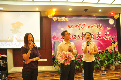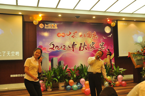 公司舉辦2012中秋家宴 時間:2012-10-06 4299 9月29日,公司在揚州西園大酒店隆重舉辦“濃情中秋,歡樂國慶——2012中秋家宴”,公司總部機關、在揚分支機構和駐外分公司回揚休假的經營層人員約百人共聚一堂,喜迎中秋、國慶佳節的來臨。家宴上,無論是領導還是普通員工,大家縱情高歌,歡樂表演,充分展現了華建大家庭其樂融融的喜慶氣氛,同時展示了華建人昂揚向上的精神風貌。