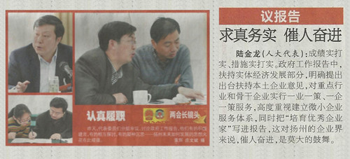 《揚(yáng)州日報》報道陸董事長參加市人代會情況