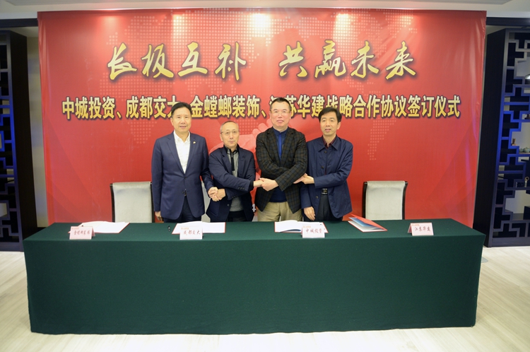 中城投資是國內領先的專業化房地產私募投資管理機構;金螳螂是中國裝飾裝潢施工領域領軍企業和首家上市公司;成都交大地產是在科技住宅領域占有領先地位的專業住宅開發商。此次簽約將房地產上下游產業的四家單位融為一體,將充分發揮各自專業領域業務優勢,整合資源,長板互補,以項目為依托,在一二線城市以住宅、寫字樓和酒店式公寓為主進行全方位項目開發和建設,并逐步形成由項目投資向企業投資轉化的良好生態。正如中城聯盟前輪值主席、成都交大董事長孟剛所說,此次四家合作具有示范意義,這種模式在聯盟內值得推廣。在華建企業展示中心,四家領導交流管理心得,暢談行業發展,共商聯合之勢。座談會后,四家大佬共同簽署了戰略合作協議書。