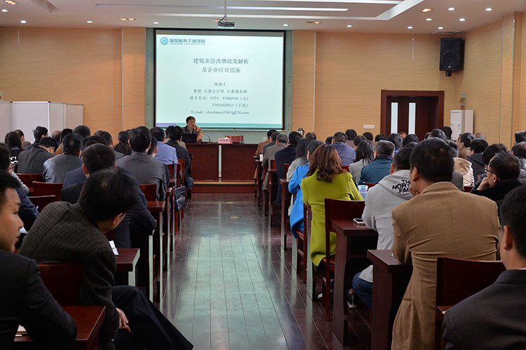 此次培訓(xùn)特邀市國(guó)家稅務(wù)學(xué)院陳斌才教授主講。陳教授就建筑業(yè)營(yíng)改增政策及企業(yè)應(yīng)對(duì)措施作了專(zhuān)業(yè)分析和講解,并與參培人員進(jìn)行了互動(dòng)交流,使參培人員對(duì)建筑業(yè)營(yíng)改增有關(guān)政策有了更深刻的理解和認(rèn)識(shí),達(dá)到了預(yù)期效果。