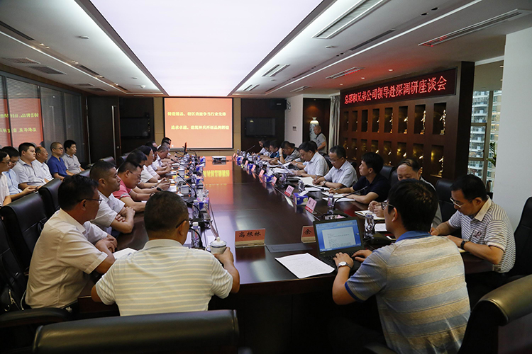 10月12日-17日,公司董事長王宏、總經理宗有農赴各區域公司調研,總會李長棟等隨行,各區域公司中層以上人員參加座談。