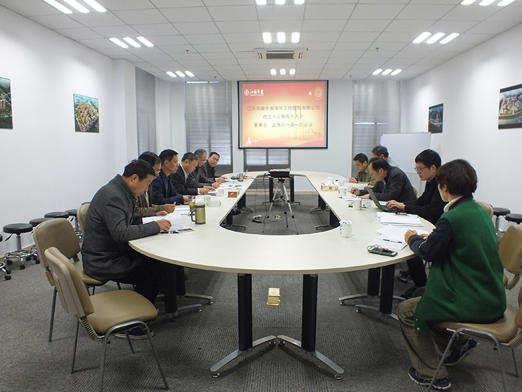 1116日下午,江蘇華建中振海外工程股份有限公司成立大會暨股東大會、董事會、監(jiān)事會一屆一次會議在揚召開。發(fā)起人股東江蘇華建、新?lián)P建、中機(jī)環(huán)建法定代表人王宏、張建華、巫金林以及中振公司董事會、監(jiān)事會及高管候選人參加會議。會議由陳榮春主持。