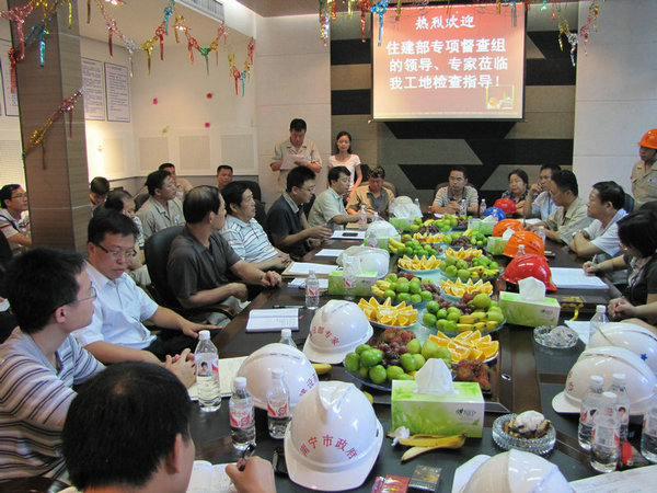 住建部建筑施工安全專項督查組檢查指導廣西麗原•天際城項目 時間:2010-10-14 5193 9月18日上午,國家住房城鄉建設部建筑施工安全專項督查組蒞臨我公司廣西麗原·天際城工地檢查指導工作,勘察了施工現場的實體安全狀況,查閱了施工質量安全技術資料,檢查了我公司的資質、安全許可、三類人員與特種作業人員持證的情況。項目部的安全防護與文明施工工作受到了督查組的一致好評,住建部工程質量安全監管司王樹平副司長在知道我們爭創“魯班獎”的情況后,提出了許多寶貴的意見,并預祝我們的質量目標得以圓滿實現。 另訊,此前麗原·天際城工程項目被評為2010年上半年廣西自治區文明工地。
