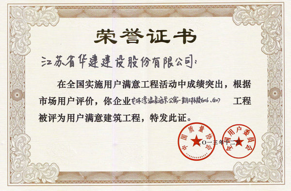 海南公司再添一項全國用戶滿意工程 時間:2013-12-16 4702 日前,在廈門召開的2013年全國施工用戶滿意工程表彰大會上,我公司承建的龍沐灣溫泉海景公寓一期三標段G06、G07工程經過積極申報,第三方用戶滿意測評、推薦、評審,全國用戶委員會審定,最終被評為2013年“全國用戶滿意建筑工程”,至此,海南公司累計已獲得8項全國用戶滿意建筑工程。