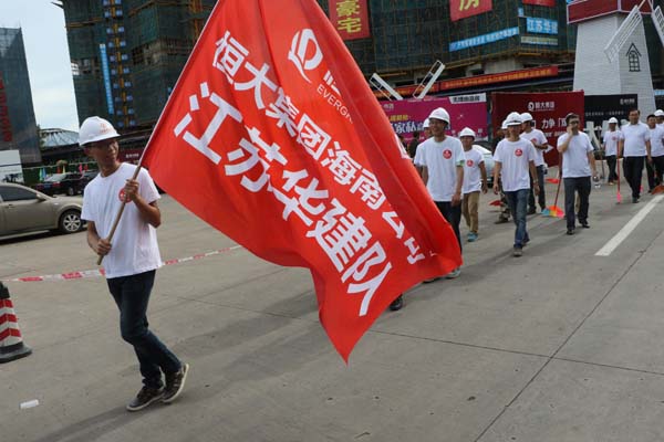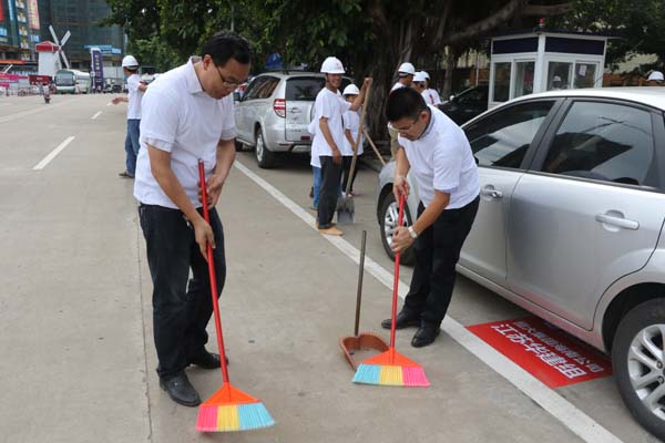 江蘇華建積極響應??谑小半p創”活動 時間:2015-09-01 2753 8月29日上午,海口市龍華區“雙創”啟動大會在我公司承建的恒大外灘中心項目現場召開,龍華區區委書記王東等領導出席啟動儀式,公司副總、海南分公司總經理王宏到會并做表態發言。 隨后,會場舉辦“我愛???,力爭雙創”授旗儀式,并組織志愿者“自掃門前雪”,手拿掃把、簸箕等工具,將所屬衛生轄區打掃得干干凈凈,以實際行動來踐行“雙創”工作。