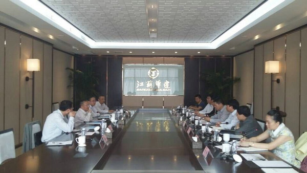 海建集團總裁吳亞春一行赴華建總部考察交流 時間:2015-10-19 4112 10月18日上午,海南省建設集團有限公司總裁吳亞春一行赴公司總部考察交流,公司常務副總程杰、海南公司副總高家馴及相關部門負責人參加接待交流。交流會上,程總介紹了公司的發展歷程和基本情況,雙方就蘇瓊兩地建筑施工企業發展、用人機制、分配機制和管理理念等方面分享各自的經驗與不足,并就尋求深度合作交流了意向,整個交流會氣氛活躍,雙方都感到受益匪淺。