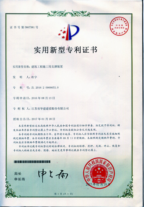 海南分公司新增1項(xiàng)實(shí)用新型專利 時(shí)間:2017-02-18 3475 近日,海南分公司《建筑工程施工用支撐裝置》成果獲得國家知識產(chǎn)權(quán)局專利授權(quán),被授予國家實(shí)用新型專利。