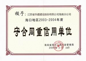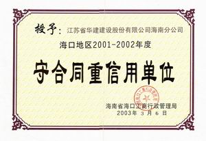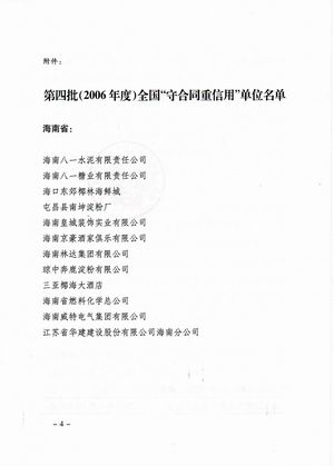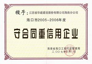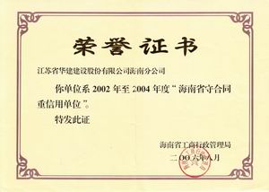 企業誠信榮譽 時間:2019-01-01 8789 2001-2002年度海口市守合同重信用 2003-2004年度海口市守合同重信用 2005-2006年度海口市守合同重信用 2002-2004年度海南省守合同重信用 2006年度全國守合同重信用1 2006年度全國守合同重信用2 2006年度全國守合同重信用3 2006年度全國守合同重信用4 2012年度海南省守合同重信用