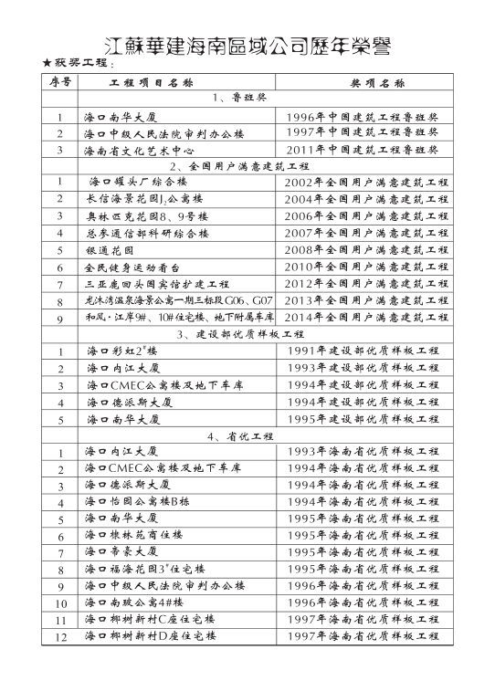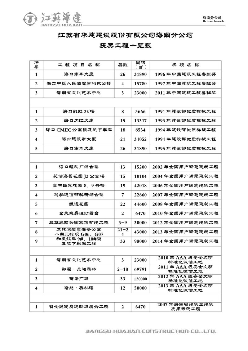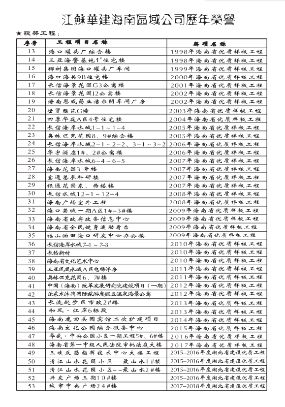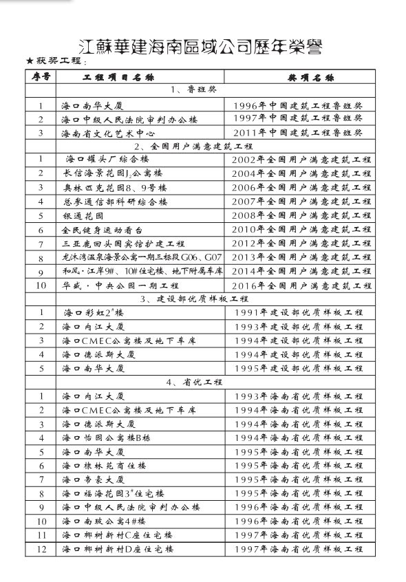 獲獎工程一覽 時間:2019-01-01 13287 魯班獎 全國用戶滿意建筑工程 全國AAA級安全文明標(biāo)準化誠信工地 海南省優(yōu)質(zhì)樣板工程 湖北省建筑優(yōu)質(zhì)工程