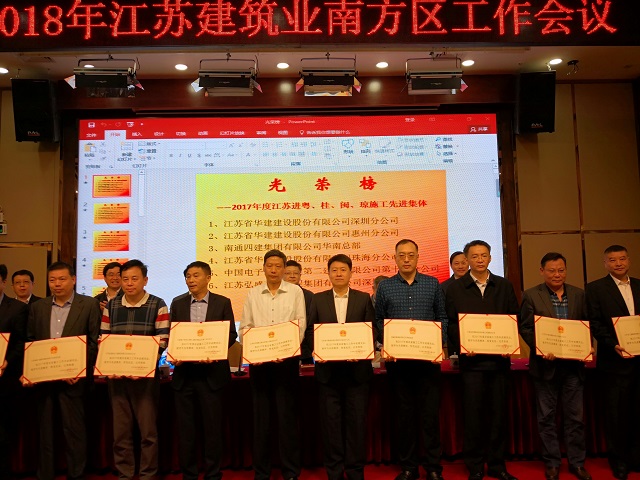 3月24日上午,江蘇省人民政府駐深圳(廣州)辦事處和江蘇省住房和城鄉(xiāng)建設(shè)廳在廣東深圳召開2017年度江蘇建筑業(yè)南方區(qū)工作會議。會上,珠海公司被江蘇省住房和城鄉(xiāng)建設(shè)廳表彰為“2017年度江蘇出省施工先進(jìn)集體”, 珠海分公司總經(jīng)理呂方達(dá)、陽江分公司副總經(jīng)理余新江榮獲“出省施工先進(jìn)個人”稱號。