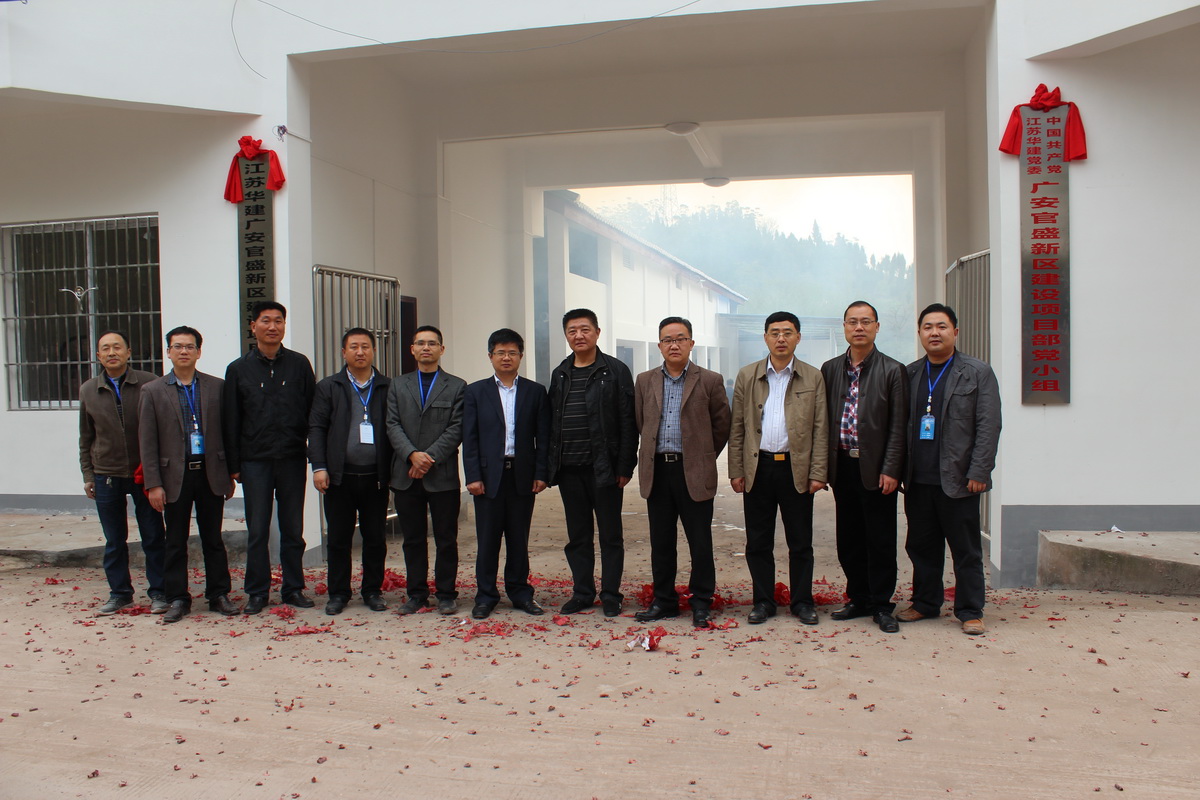 廣安項目指揮部及黨小組舉行揭牌儀式 時間:2014-03-19 5812 2014年3月18日,江蘇華建副總經理陸俊、工程部經理丁華與江蘇華建副總經理、珠海區域公司總經理繆國樞、珠海區域公司副總經理嚴正濤、總會計師馮喜平一起,參加江蘇華建四川廣安官盛新區基礎設施暨美好家園建設項目指揮部及黨小組的揭牌儀式。