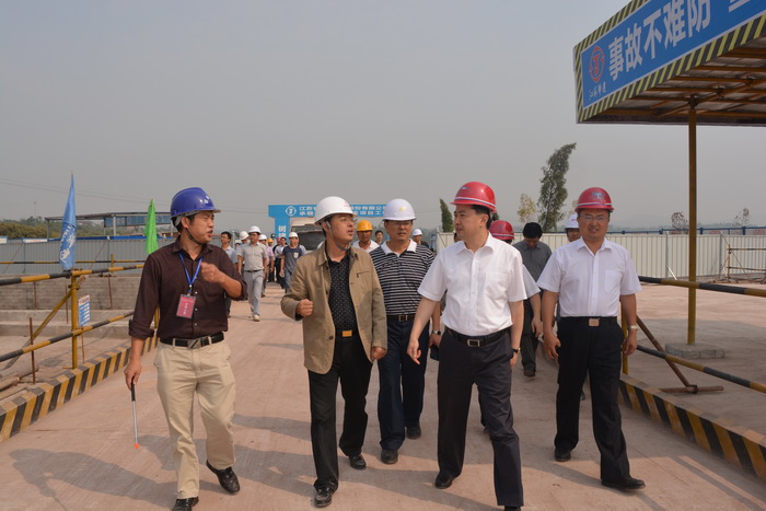 109日上午,廣安市長羅增斌率廣安市、區政府四套班子成員赴我司承建的官盛新區建設項目現場視察。新區管委會副主任李常兵簡要介紹了項目整體概況,項目副總指揮嚴正濤就項目進展作匯報。在具體查看現場施工情況和了解項目進度及時間計劃后,羅市長對項目整體推進情況表示滿意。他指出,官盛新區建設項目是大項目,是廣安紀念小平誕辰110周年的重點工程,建成后也將是華建的一座豐碑,項目建設在抓進度的同時要確保質量,對華建承建官盛新區有信心,相信華建一定能優質高效地完成項目建設,交出一份各方都滿意的答卷。