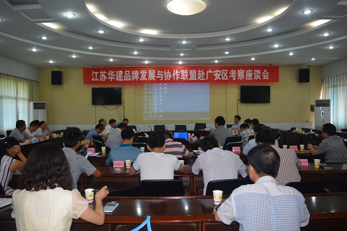 會前,考察團觀看了廣安區宣傳片和官盛新區概念規劃設計宣傳片,對廣安區現狀及其未來發展前景有了初步了解。隨后,吳榮勝區長從投資條件、區位優勢以及政策支持等方面推介了廣安,表達了通過華建聯盟這個平臺架設起與聯盟企業開展深度合作的橋梁的愿望。文建平書記從華建參與建設的官盛新區談起,高度評價雙方的合作,希望有更多的聯盟企業來廣安投資,在都市產業、旅游地產以及工業等方面有更深的合作交流。吳主席簡單介紹了華建聯盟有關情況,他對文書記、吳區長支持和肯定華建廣安項目建設工作表示感謝,認為這增強了雙方進一步合作的信心和決心,希望發揮聯盟優勢尋求更多的合作空間,盡快找到雙方合作的方向,托起共同的事業。