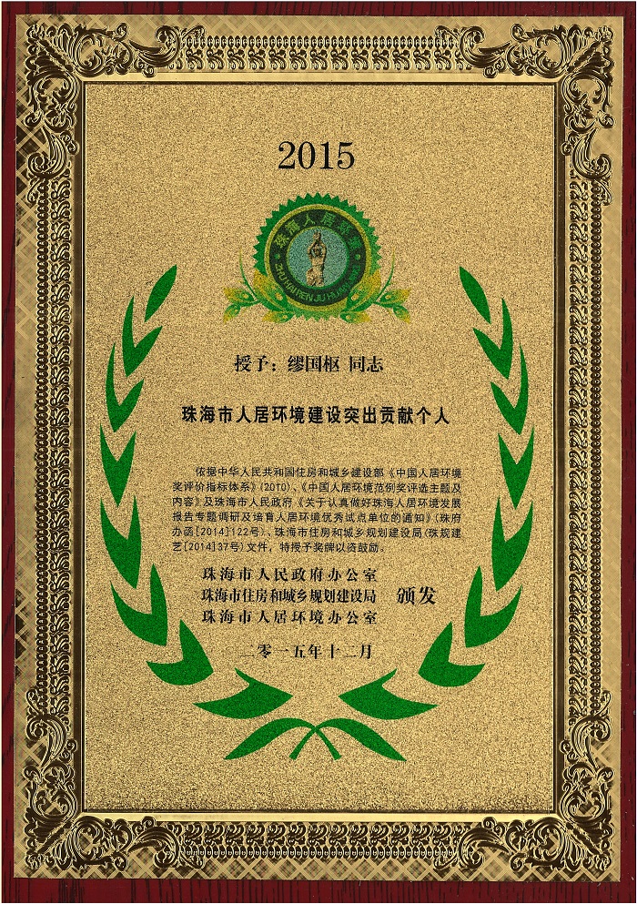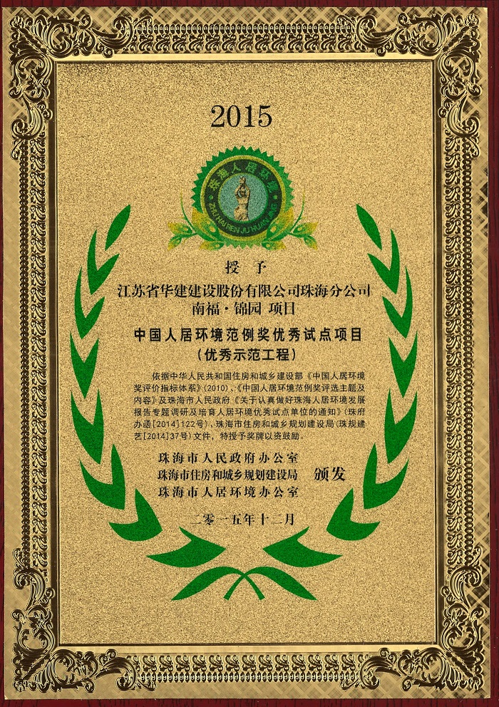 公司榮獲珠海市人居環境建設突出貢獻單位等四項表彰 時間:2015-12-22 4327 近日,珠海公司被珠海市人民政府辦公室、珠海市住房和城鄉規劃建設局和珠海市人居環境辦公室聯合表彰為珠海市人居環境建設突出貢獻單位(優秀建筑施工企業),繆國樞總經理被授予珠海市人居環境建設突出貢獻個人稱號,由我公司承建的拱北海關業務技術綜合樓及南福·錦園項目榮獲中國人居環境范例獎優秀試點項目(優秀示范工程)。