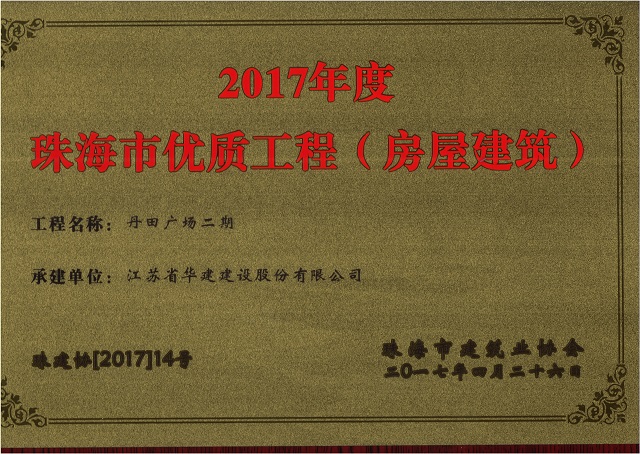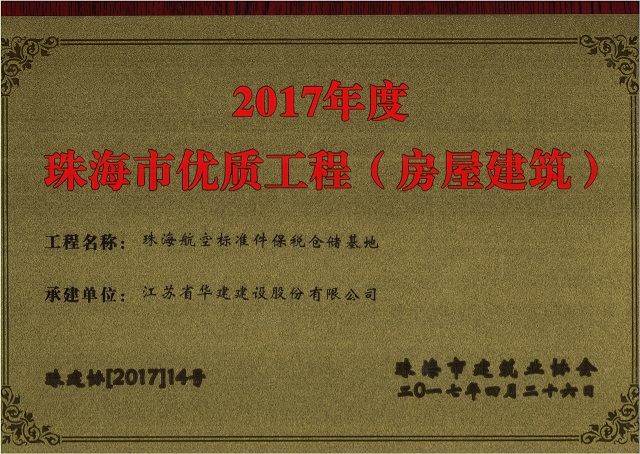 公司2項目獲評珠海市房屋建筑優(yōu)質(zhì)工程 時間:2017-05-16 3795 近日,珠海市建筑業(yè)協(xié)會發(fā)文公布2017年度珠海市優(yōu)質(zhì)工程名單,我司承建的珠海航空標準件保稅倉儲基地和丹田廣場二期的2個項目榜上有名。