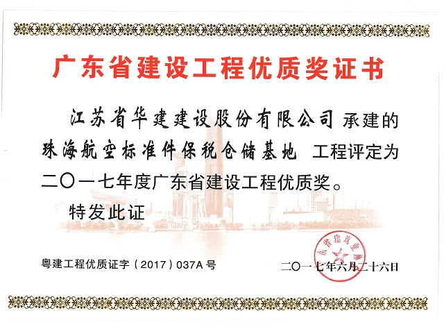 公司榮獲三項2017年度廣東省建設工程優質獎 時間:2017-10-17 3541 近日,廣東省建筑業協會發文公布2017年度廣東省建設工程優質獎名單,我司承建的珠海航空標準件保稅倉儲基地、丹田廣場二期和君怡花園小區中心商場3個項目榜上有名。