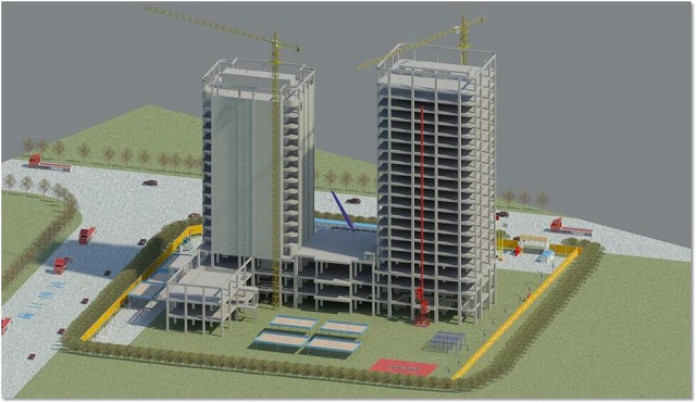 橫琴隆義廣場(chǎng)項(xiàng)目位于珠海橫琴自貿(mào)區(qū),工程造價(jià)為16000萬(wàn)元,建筑面積約60000平方米,由1棟17層和1棟20層的塔樓組成,最大高度為85.8米,合同工期730天。建成之后將成為橫琴島上的高檔酒店和寫字樓。該工程運(yùn)用BIM技術(shù),珠海公司聯(lián)合華建設(shè)計(jì)院建立項(xiàng)目BIM設(shè)計(jì)模型,完成了多專業(yè)碰撞檢查、模型二次深化設(shè)計(jì)、凈高分析等工作。此外,公司在項(xiàng)目施工中還基于高精度BIM施工模型做到了施工臨時(shí)場(chǎng)地布置、BIM樣板引路、機(jī)電管線綜合優(yōu)化、鋁合金模板預(yù)拼裝、腳手架系統(tǒng)深化設(shè)計(jì)、動(dòng)態(tài)可視化交底、施工進(jìn)度計(jì)劃及造價(jià)控制等工作的優(yōu)化管理,項(xiàng)目結(jié)合二維碼的協(xié)同管理云平臺(tái),實(shí)現(xiàn)了“工廠預(yù)制加工”“掃碼組裝”“二維碼安全技術(shù)交底”“設(shè)備信息錄入”等智能化操作,在保證施工質(zhì)量的同時(shí)也極大地提高了協(xié)同工作的效率,使項(xiàng)目在施工成本、進(jìn)度、安全、質(zhì)量等方面的管理效率得到了巨大提升。