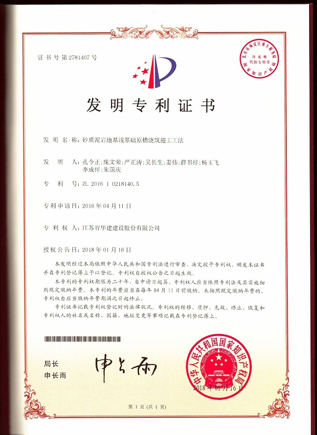 近日,從國家知識產權局傳來好消息,重慶分公司申報的技術成果《砂質泥巖地基淺基礎原槽澆筑施工工法》獲得國家發明專利授權。該發明專利為重慶分公司獲得的首個國家發明專利。至此,珠海區域公司國家發明專利已達兩項。