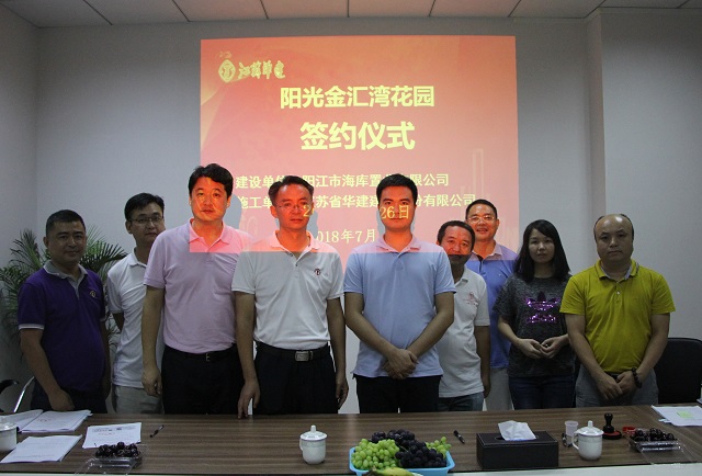 公司新簽1項目,造價1.66億元 時間:2018-07-27 4538 7月26日下午,陽光金匯灣花園施工總承包合同在陽江市海庫置業有限公司會議室成功簽約,項目開發商陽江市海庫置業有限公司總經理黃立衡,珠海區域公司總經理呂方達出席簽約儀式。 該項目位于陽江市江城區,總建筑面積約10.5萬平米,由13棟商住樓組成,造價約1.66億元,由第一項目部施工。