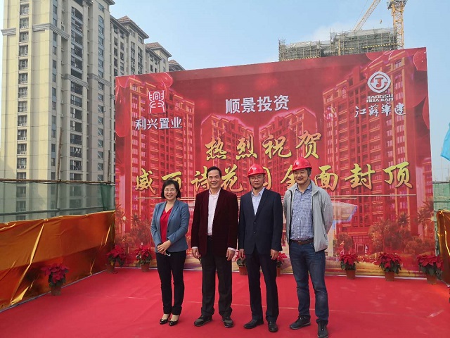 陽江威麗詩花園2期項目全面提前封頂 時間:2019-01-15 2520 2019年1月14日,第一項目部承擔施工任務的陽江威麗詩花園2期項目提前60天實現主體結構全面封頂。珠海利騰集團董事長黃金紅、總經理譚劍云,江蘇華建珠海區域公司總經理呂方達等參加封頂儀式。 威麗詩花園2期8~10棟住宅及地下室、12~15棟住宅及地下室、16棟住宅及地下室(含商業裙樓)、17~18棟住宅及地下室、19棟住宅及地下室(含商業裙樓)土建及水電安裝工程。該工程含商住樓共11棟,其中地下室建筑面積約34378平方米、地上建筑面積約127468平方米,總建筑面積約161847平方米。
