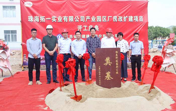 珠海拓一產業園區廠房改擴建項目舉行開工儀式 時間:2019-11-03 2509 11月2日,公司承建的珠海拓一實業有限公司產業園區廠房改擴建項目舉行隆重的開工儀式。 珠海拓一實業有限公司產業園區廠房改擴建項目,擴建項目建筑總面積為19088.9平方米,其中新一號廠房建筑面積為19050.68平方米(地上建筑面積為17019.75平方米,地下建筑面積為2030.93平方米);門衛室建筑面積為38.22平方米,工程暫定價約4600萬元,改建項目正在洽談中。