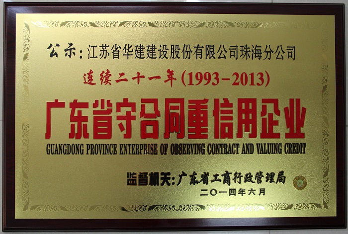 2014廣東省連續(xù)二十一年守合同重信用企業(yè)
