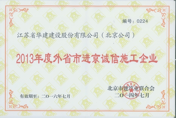 日前,江蘇華建北京公司被北京市建筑業(yè)聯(lián)合會授予“北京建設(shè)行業(yè)誠信企業(yè)”稱號。近年來,北京市...