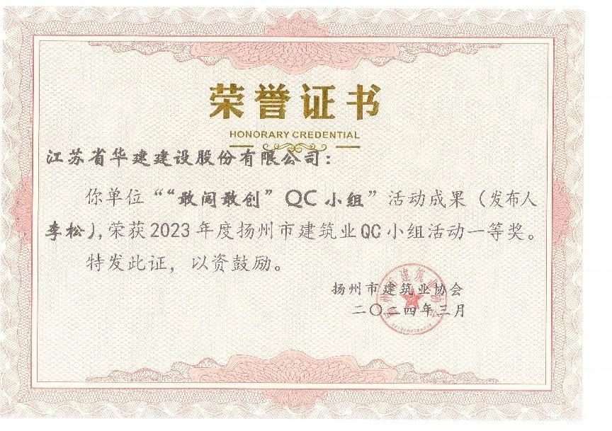 近日,揚州市建筑業協會發布了2023年揚州市建筑業QC小組活動成果評價結果,公司13項QC...