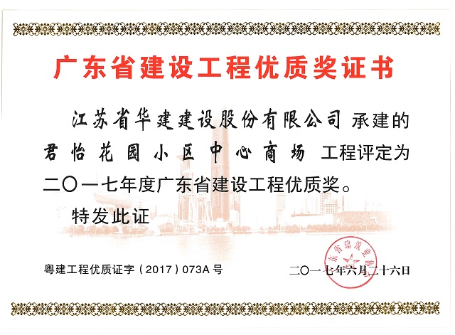 君怡花園小區中心商場2017年度廣東省建設工程優質獎