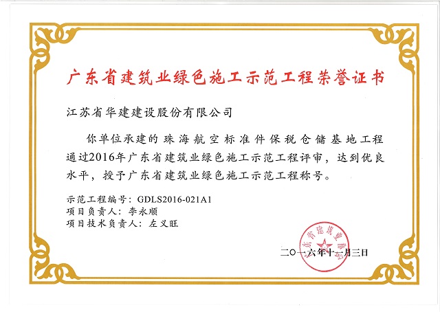 珠海航空標準件保稅倉儲基地工程廣東省建筑業綠色施工示范工程