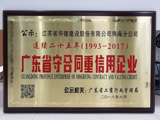 廣東省連續二十五年守合同重信用企業