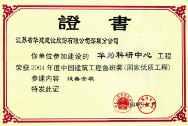 華為科研中心由全國著名的高科技企業深圳華為技術有限公司投資興建的,工程位于深圳市龍崗區坂雪崗工業區內,占地面積約15萬平方米,建筑面積29.6萬平方米,由地下一層車庫、地上一幢21層高的綜合樓、三幢7層高的科研樓和一幢4層高的員工食堂組成。該工程由金門建筑(中國)有限公司、中建二局深圳南方建筑公司和中國華西企業有限公司聯合總承包,江蘇華建深圳分公司經業主指定為機電分包商,承建的機電分包工程合同價格為2.3億元,工程于2001年4月開工,至2003年9月整體工程竣工。