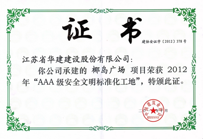 椰島廣場(chǎng) 時(shí)間:2013-01-17 10944 椰島廣場(chǎng)項(xiàng)目位于??谑旋埲A路,該工程總建筑面積115562平方米,其中地下室建筑面積20388平方米,1#-4#樓地上建筑面積58689平方米,建筑高度93.35米,5#-6#樓地上建筑面積36485平方米,建筑高度96.45米。工程于2011年4月30日開(kāi)工,工期為480天。 2012年10月,該工程被中建協(xié)評(píng)為2012年“AAA級(jí)安全文明標(biāo)準(zhǔn)化工地”。
